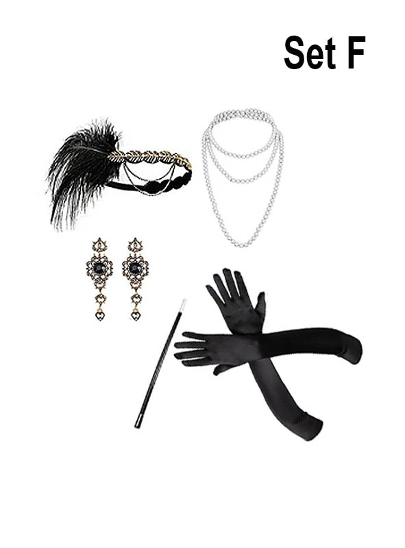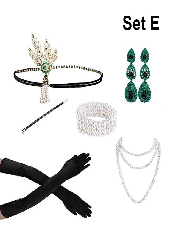 Auf zur nächsten Glamour Party. Und zum Paillettenkleid tragen Sie das 20er Charleston Accessoire Set. Mit den funkelnden Ohrringen, den langen Gala Handschuhen, Perlenkette und dem wunderschönen 20er Jahre Kopfschmuck sieht Ihr Kostüm perfekt aus.