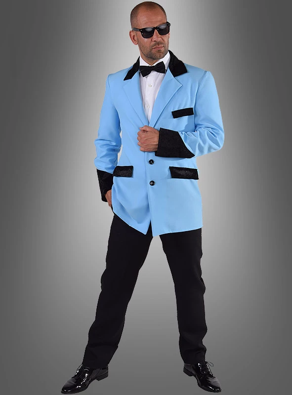 Dieser Ted kann sicherlich richtig gut Rock´n´Roll tanzen. Mit seinem blau-schwarzen 50er Jahre Kostüm Dinner Jackett macht er dabei eine gute Figur auf der Mottoparty und an Karneval.