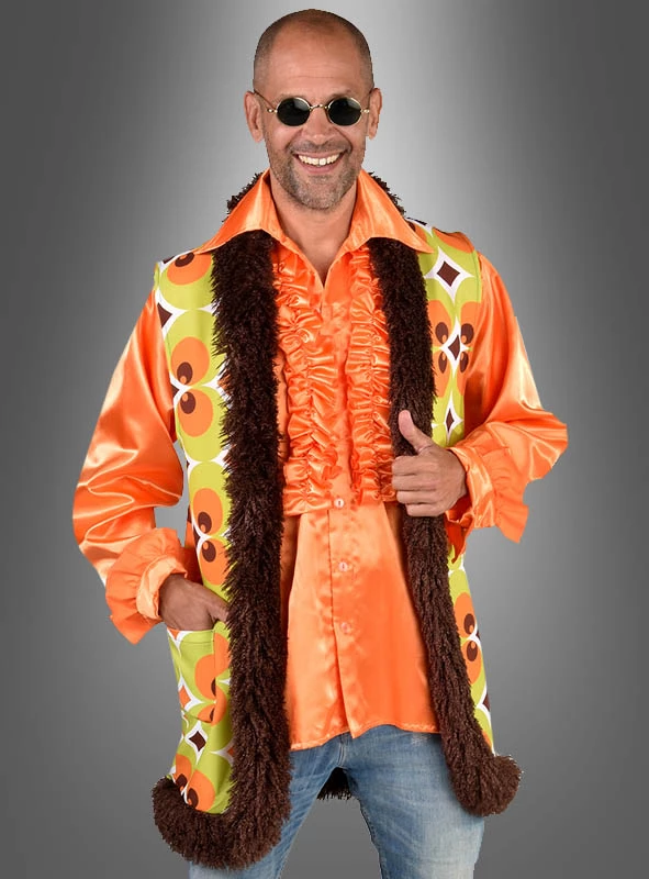 Das Retro-Kreismuster in den typischen Farben der frühen 70er Jahre ist einfach fantastisch. Eingefasst ist die lange Herrenweste mit braunem Langhaar-Plüsch. Ein weiterer Blickfang! Die Weste ist von toller Qualität und bei 30 Grad waschbar. Hemd, Brille und Hose sind nicht im Lieferumfang enthalten.