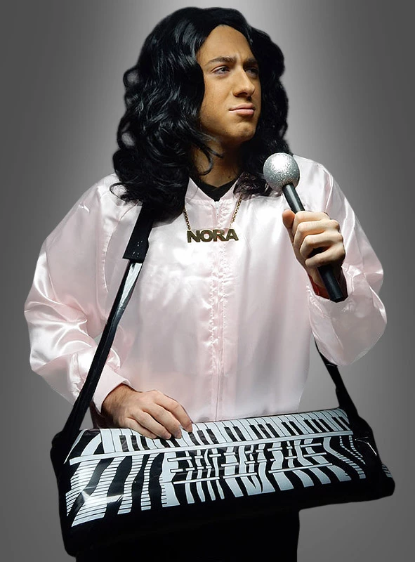 Das 80er Jahre Sänger Set ist der Knaller auf der nächsten 80er Jahre Party. Mit Nora Kette, schwarzer Lockenperücke, Keyboard und Mikrofon sind Sie bestens ausgestattet und der unverkennbare Hingucker auf der Mottoparty.