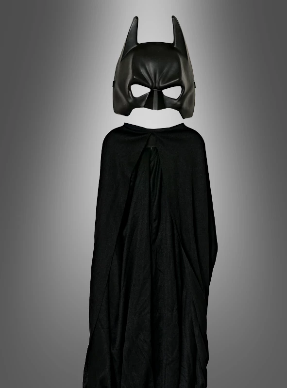 Das Kostümset besteht aus einem schwarzen Cape, das mit Klettverschluss befestigt wird sowie einer geformten Halbmaske aus Hartkunststoff.