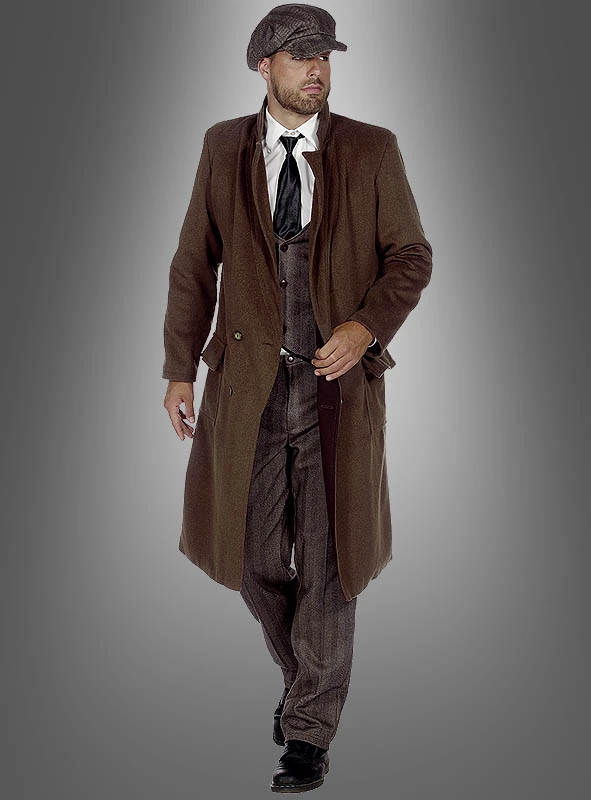 Ein brauner Luxus Herrenmantel im 20er Jahre Stil passt zu vielen Kostüm Typen. Sie möchten ein Gangster der Shelby Familie aus Peaky Blinders sein? Oder doch lieber ein gerissener Detektiv wie Pinkerton oder ein Ermittler aus Babylon Berlin?