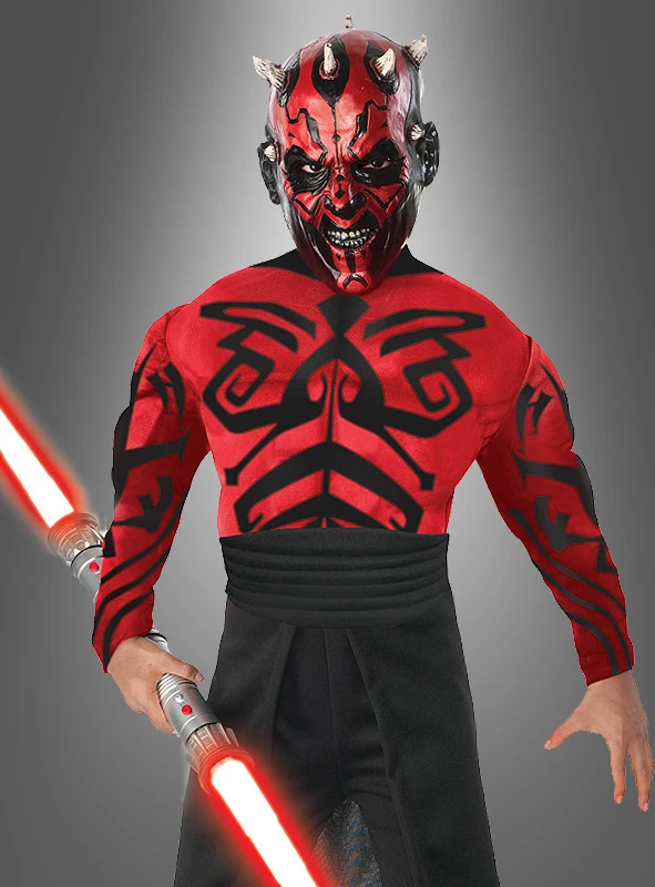 Das Darth Maul Kostüm mit tollen Muskeln für Kinder ist ideal für Fans von The Clone Wars. Er wurde von Darth Sidious ausgebildet und gehört zu der Spezies der Zabrak und wuchs auf dem Planeten Dathomir auf. Die rot-schwarzen Tätowierungen im Gesicht und die Hörner auf dem Kopf machen ihn zu einer der beliebtesten Figuren aus Star Wars.