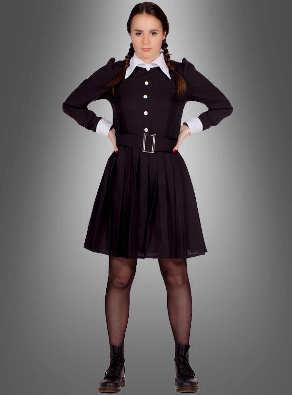 In diesem düsteren Gothic Tochter Kleid können Sie sich wie eine Schwester oder Cousine von Wednesday, dem Kind von der Addams Family fühlen. Dabei sollten Sie niemals lachen oder lächeln und alle Farben vermeiden. Eine tolle Verkleidung!