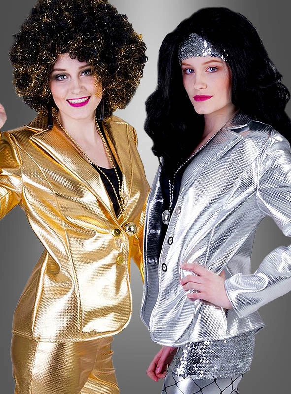 Ob in Gold oder Silber, diese glänzende Disco Jacke für Damen sieht umwerfend aus. Egal ob Sie auf eine Disco Party oder zu einem 80er Jahre Event gehen. Das glänzende Jackett für Damen unterstreicht Ihren Disco Style.