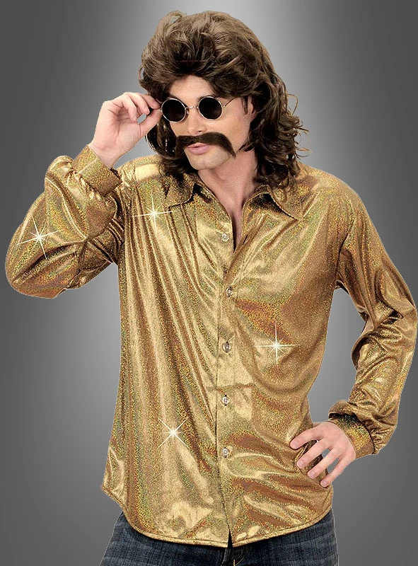 Mit diesem Glitzer Hemd für Herren kann die Schlagerparty so richtig los gehen. Indoor funkeln Sie damit im Licht der Scheinwerfer und Outdoor machen Sie der Sonne Konkurrenz. Ein 70er Jahre Outfit, dass nicht jeder hat.