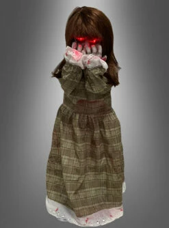 Wenn diese Halloween Deko Figur in Bewegung kommt, dann ist die Party voll im Gange. Denn dieser Kettensägen Killer reagiert auf Bewegung oder laute Geräusche. Dann dröhnt die Kettensäge und der Zombie zittert und vibriert stark. Dazu leuchten seine Augen glühend rot.