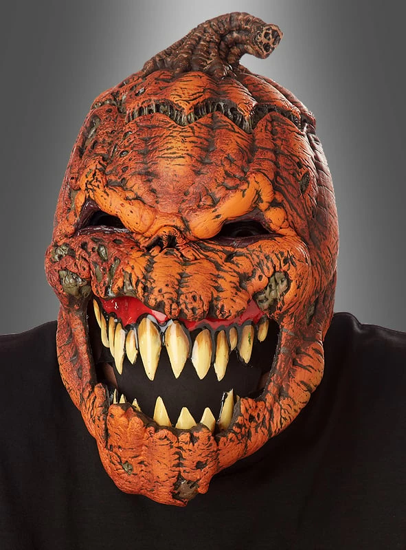 Deluxe Kürbiskopf Halbmaske mit beweglichem Unterkiefer. Horror Halloween Maske mit tollem Effekt. Der absolute Partyschreck – nicht nur an Halloween. Wer möchte schon von einem Kürbisgeist attackiert werden?