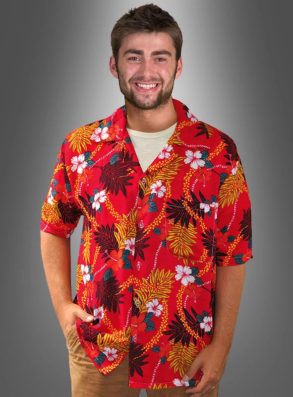 Aloha! Auch bei der nächsten Strandparty wird ein Hawaii Hemd wie der rote Blütenzauber wieder voll im Trend liegen. Doch man muss nicht unbedingt auf eine Feier gehen, denn im Sommer eignet sich dieses weiche Hemd auch ideal als Freizeitlook. Und mal ganz ehrlich… wer möchte manchmal nicht so cool wie Magnum sein? Das rote Hawaiihemd ist mit einem Blüten- und Blättermuster bedruckt, das garantiert auffällt.