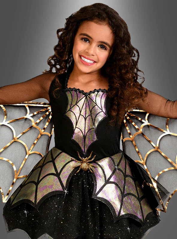 Dieses traumhafte Spinnenkostüm für Mädchen bezaubert durch viele Details und schillernde Effekte.