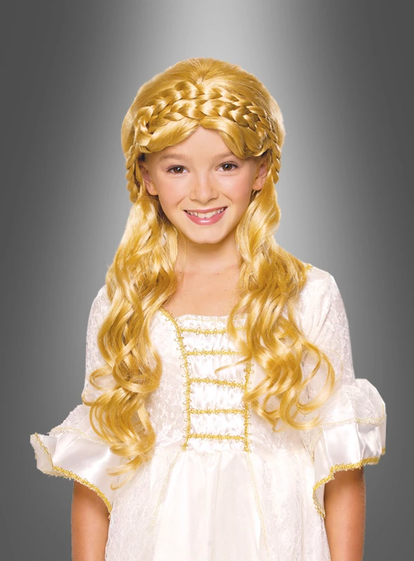 Damit wird die traumhafte Verkleidung perfekt! Blonde Prinzessinnen-Perücke für Kinder mit Locken und geflochtenem Zopf.