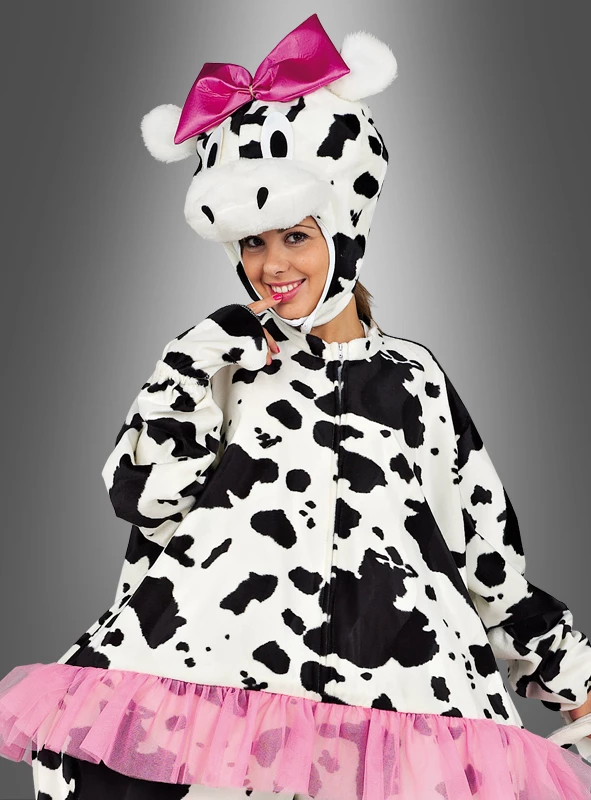 Unter diesem Tierkostüm kann man auch wärmere Kleidung tragen. Ideal für den Straßenkarneval. Als Gruppenkostüm können Sie mit einer ganzen Kuh Herde durch den Karneval ziehen und die Kneipen abgrasen.