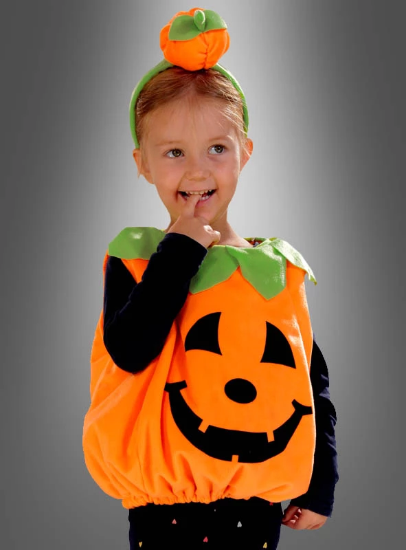 Es muss an Halloween nicht immer schaurig und gruselig sein, schon gar nicht für kleinere Kinder. Daher ist das kleine Kürbis Kinderkostüm ideal geeignet, wenn man noch nicht im richtigen Alter für die fiesen Schreckgespenstkostüme ist. Und Süßigkeiten sammeln geht als freundlich blickender Kürbis genau so gut.