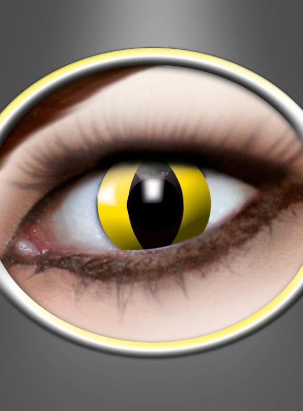Farbige weiche gelbe Katzenaugen Kontaktlinsen. Das Highlight für ihr Katzen, Schlangen oder Medusa Kostüm. Einfach der Wahnsinn im Karneval, an Halloween oder einfach auf jeder Party und in der Disco. Garantiert ein Hingucker! Antirotation! Das Katzenauge bleibt senkrecht durch Wichtung.