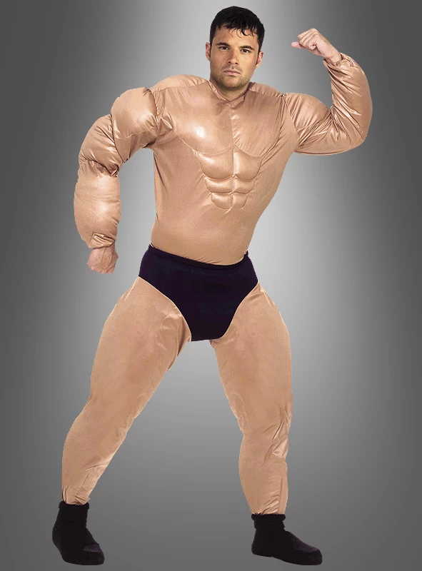 Wenn Sie dieses Muskelmann Kostüm tragen, wird sogar Arnie blass vor Neid. Oberteil und separate Hose mit abgenähten, wattierten Muskeln. Sehr angenehm weich und praktisch zu tragen. Und das ganz ohne Training im Fitnessclub.
