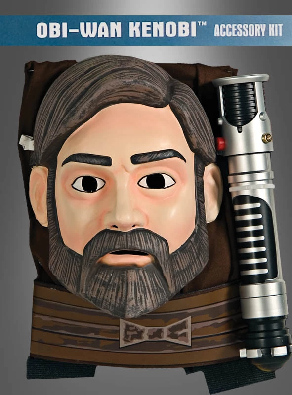 Das tolle Jediritter Obi-Wan Kenobi Kinderkostüm Set besteht aus einem braunen Umhang mit Kapuze, der Kindern mit der Größe 122 bis 146 passt. Der toll bedruckte Stoffgürtel und die stabile Halbmaske aus Kunststoff mit Obi-Wans Gesicht sind ebenfalls dabei. Auch das tolle Lichtschwert in blau, das am schönsten in abgedunkelten Räumen leuchtet wenn man es anschaltet. Batterien sind nicht enthalten. Die Klinge des Lichtschwerts wird aus dem Handgelenk heraus ausgeworfen.