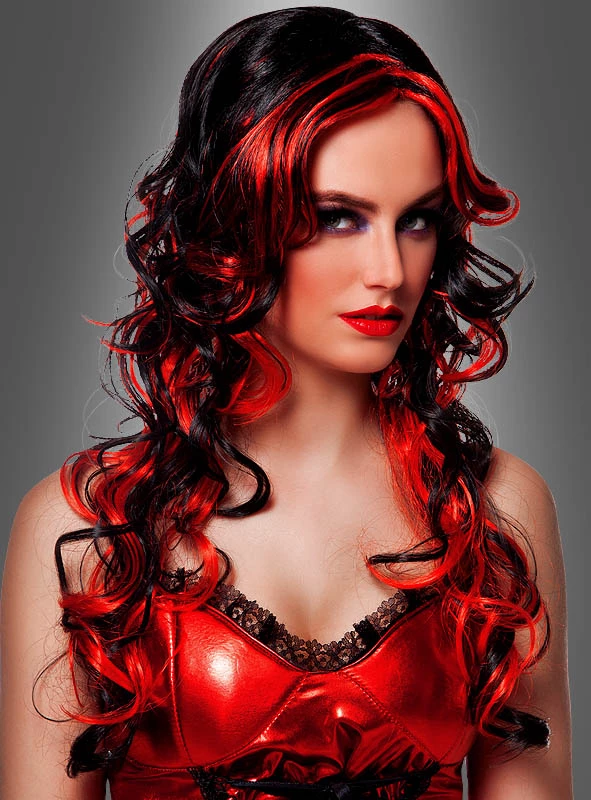 Ob Teufelin, Rockstar oder verführerische Hexe: Die Perücke ist wandelbar und passt zu vielen Kostümen, bei denen Weiblichkeit und Verführung groß geschrieben werden.