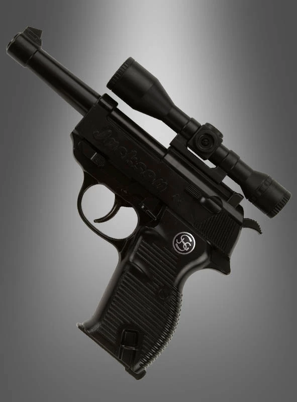 Genauigkeit ist wichtig bei Pistolen. Natürlich auch bei der Jackson Pistole mit Zielfernrohr und Fadenkreuz. Damit kann ein charmanter Agent jede Dame auf der nächsten Party anvisieren.