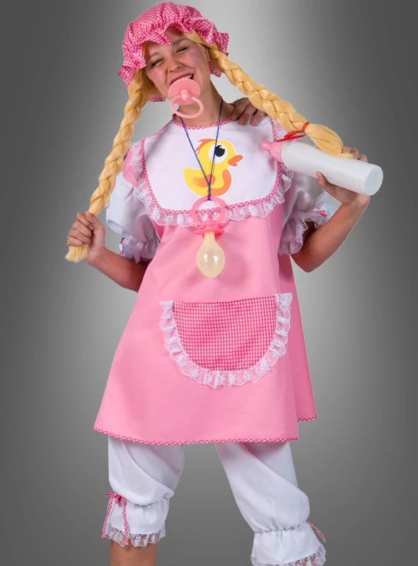 Stellen Sie Ihr inneres Kleinkind zur Schau mit dem lustigen Riesenbaby Kostüm für Damen. Heute müssen Sie ausnahmsweise nicht die Mama sein und können sich quengelnd und Daumen lutschend einen Spaß erlauben. Tolles Kostüm für Gruppen, die als Baby unterwegs sein wollen oder in Kombination mit unserem Storchkostüm.