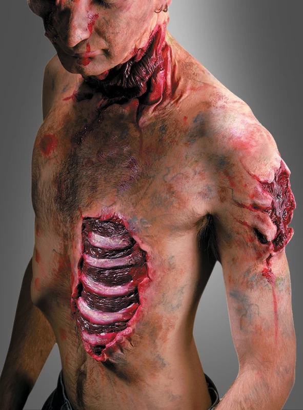Genialer Halloween-Schocker! Der offene Brustkorb wird zum Hingucker des Abends. Mit diesem Reel F/X Latex-Wunde bekommen Sie die Profi-Qualität aus den Special-Effekt-Studios in Hollywood!