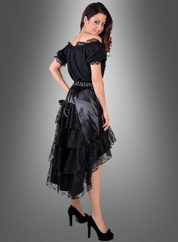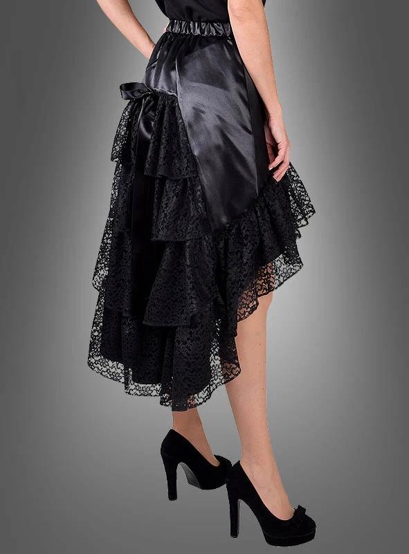 Dieser schwarze Rock mit Spitze wird Sie begeistern. Er eignet sich nicht nur hervorragend für Gothic Kostüme wie Vampirinnen, sondern passt auch gut als Teil Ihres Steampunk Outfits.