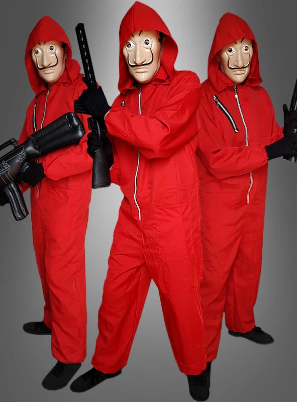 Möchten Sie die Protagonisten Rio, Nairobi, Moskau, Berlin, Tokio, Helsinki, Denver und Oslo respektive deren Geiseln, welche in der Serie ebenfalls in Overalls gehüllt werden, darstellen, bestellen Sie einfach dieses Kostüm für Damen und Herren aus unserem Shop. Durch den direkten Versand Ihrer Lieferung aus Deutschland ist das Set schnell bei Ihnen zuhause – rechtzeitig bestellt oder per Express-Versand angefordert, sind der rote Anzug aus dem Serien-Raubüberfall auf die spanische Banknotendruckerei in Madrid sowie die Gesichtsmaske schon am nächsten Tag bei Ihnen.