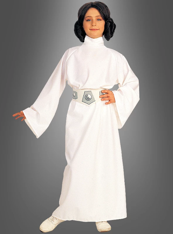 Das Prinzessin Leia Kostüm bietet alles, was ein Star Wars Fan benötigt. Das weiße Kleid ist am Hals geschlossen und hat einen geraden Schnitt. Die weiten Ärmel bieten optimale Bewegungsfreiheit. Auf der Rückseite wird das Kostüm mit einem Klettverschluss geschlossen und geöffnet. Der Gürtel aus Stoff wird ganz einfach umgebunden. Somit passt er jeder kleinen Sternenkriegerin. Selbstverständlich darf auch die kultige Leia Perücke mit den gerollten Haarschnecken aus Star Wars Episode IV nicht fehlen.