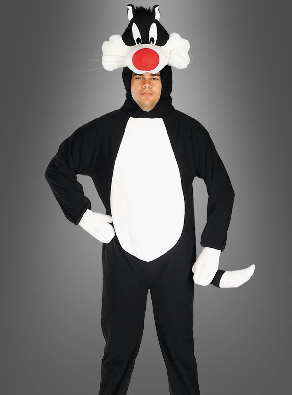 Sylvester ist der Kater aus Looney Tunes und immer auf der Jagd nach dem Vogel Tweety. Das Sylvester Kostüm besteht aus kuschelweichem Fleece Overall mit Reißverschluss vorne und befestigtem Kopfteil aus Plüschstoff. Am Bein-Ende ist ein Gummiband eingenäht. Keine Schuhüberzieher, wie auf der Abbildung.