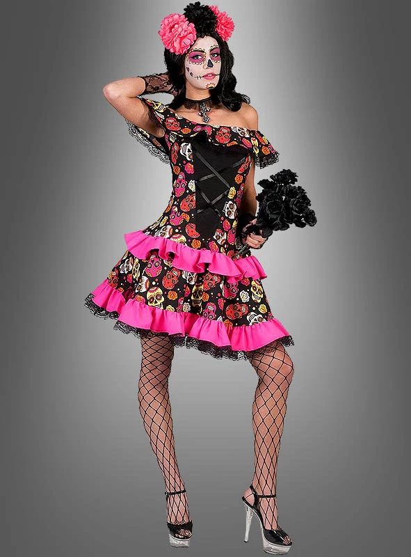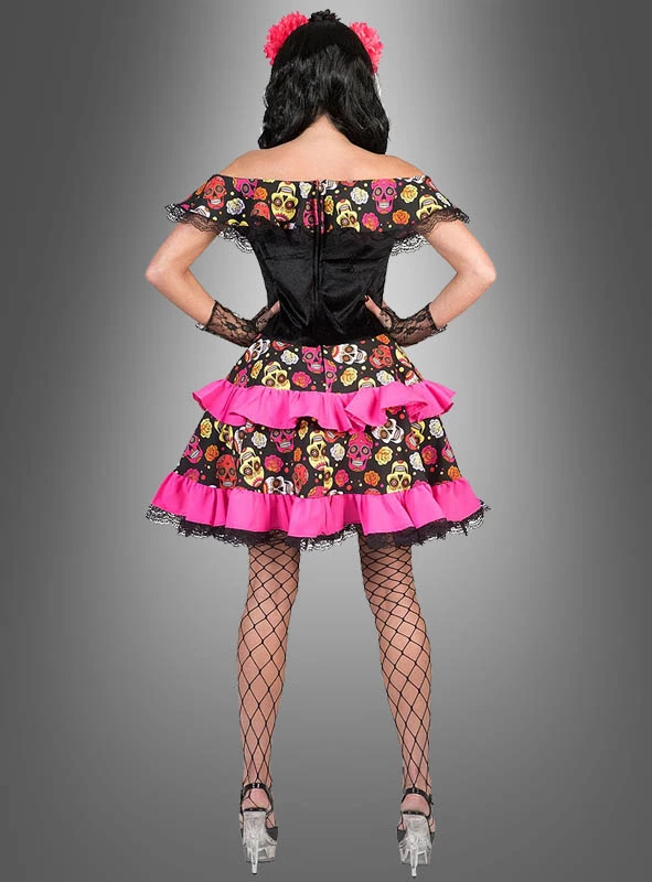 Das wunderschöne Tag der Toten Kleid Miranda besticht durch tolle Qualität und gute Passform. Das Damenkostüm kann zu Halloween, dem Tag der Toten und auch an Karneval getragen werden.