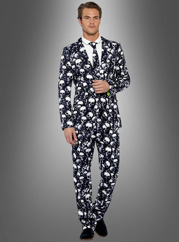 Totenköpfe so weit das Auge reicht. Mit diesem Anzug machen Sie eine gute Figur auf jedem gruseligen Event, sei es auf der Mottoparty oder an Halloween. Und dabei sind Sie trotzdem noch elegant.