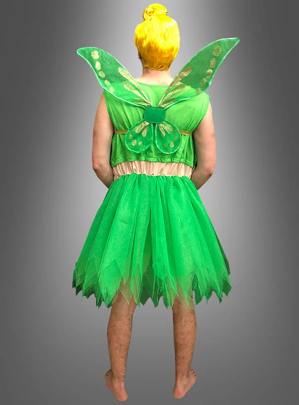 besteht aus einem Kleid mit angenähtem grünen Oberteil, Bierbauch und Tüllrock. Das glitzernde Oberteil hat einen Unterstoff, damit es nicht kratzt. Der Bierbauch hängt protzend vorn über und ist sogar mit einem Bauchnabel ausgestattet. Die schönen Brüste sind leicht wattiert und können auf Wunsch auch noch ausgestopft werden. Passend zunm Feenkostüm gibt es eine kurze grüne Hose mit Hosentaschen. Die ist schön weit geschnitten und mit einem Gummizug im Bund. Der grüne Tüllrock unserer Elfe besteht aus mehreren Lagen, ist schön fetzig geschnitten und glitzert und funkelt. Natürlich sind auch die glitzernden Elfenflügel und die gelbe Perücke im Lieferumfang enthalten.