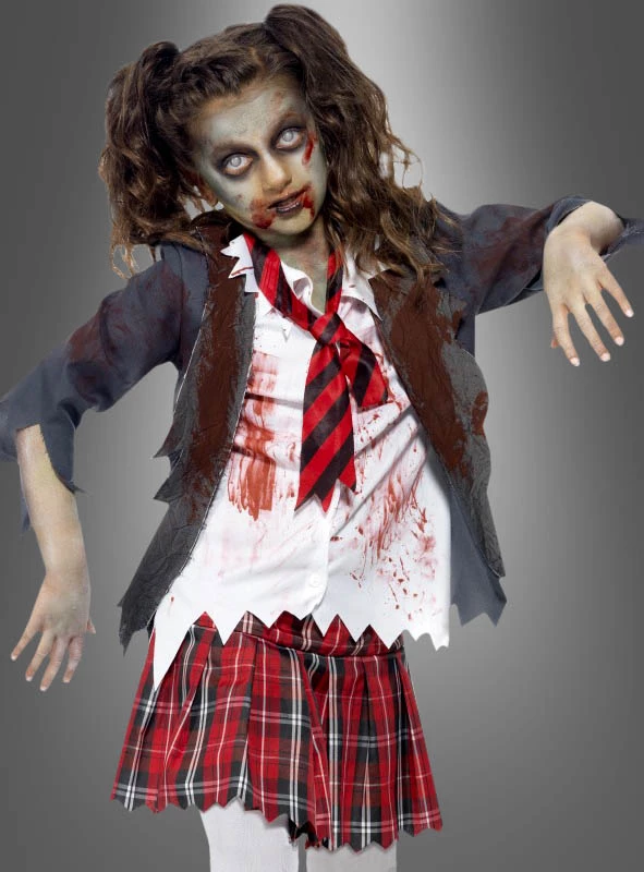 Das Zombie Schulmädchen macht Jagd auf noch lebende Klassenkameraden, da keiner mit ihm spielen möchte. Woran das wohl liegt? Cooles Outfit für alle Mädchen, die an Halloween ein wenig gruseliger unterwegs sein wollen. Passend für die Eltern haben wir Zombie Schuljungen und -mädchen für Erwachsene.