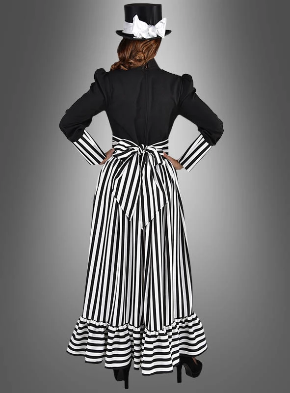 Beim Kleid viktorianische Dame ist der lange Rockteil auffällig schwarz-weiß gestreift –