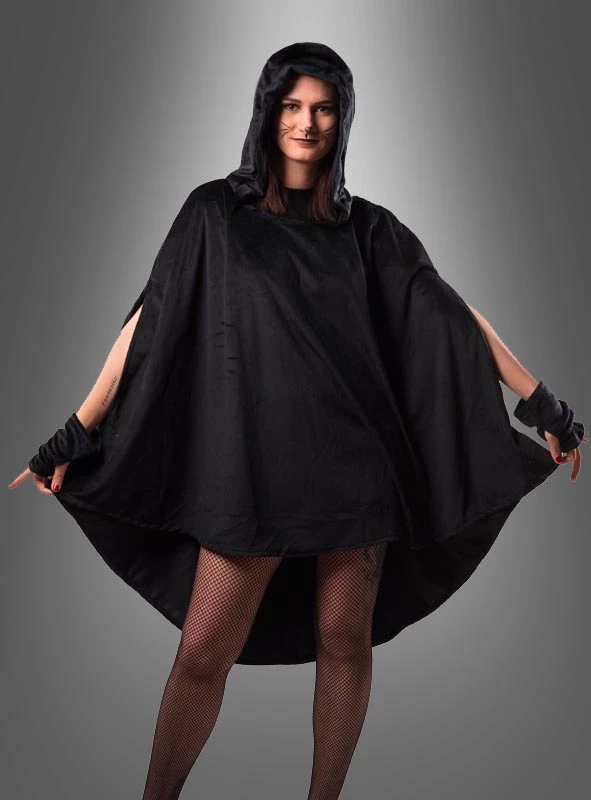 Der samtweiche und weite geschlossene Umhang ist der ideale Begleiter an Karneval, aber auch im Alltag ein tolles Accessoire. Ein schwarzer Poncho sieht cool aus und kann zu fast allem getragen werden. Durch die Weite ist er von XS bis 5XL tragbar und deshalb auch für Gruppen und schwangere Damen perfekt geeignet. Auch für Männer ein tolles Kostüm.